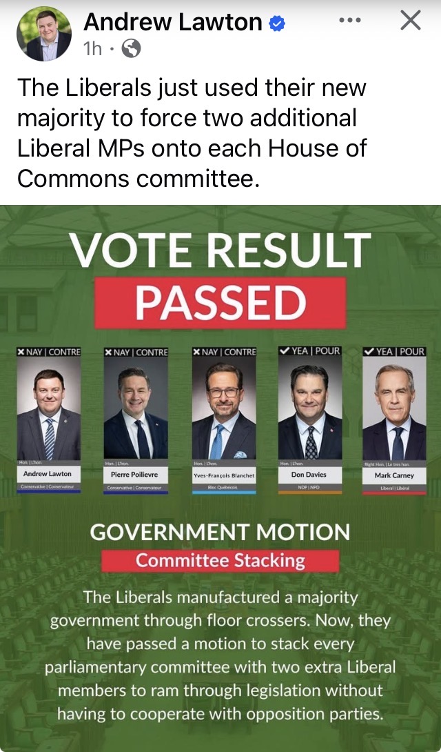 It’s so infuriating. It’s like blantant laugh in your face anti-democracy. Click FB post screenshot to see Andrew Lawton’s comments.