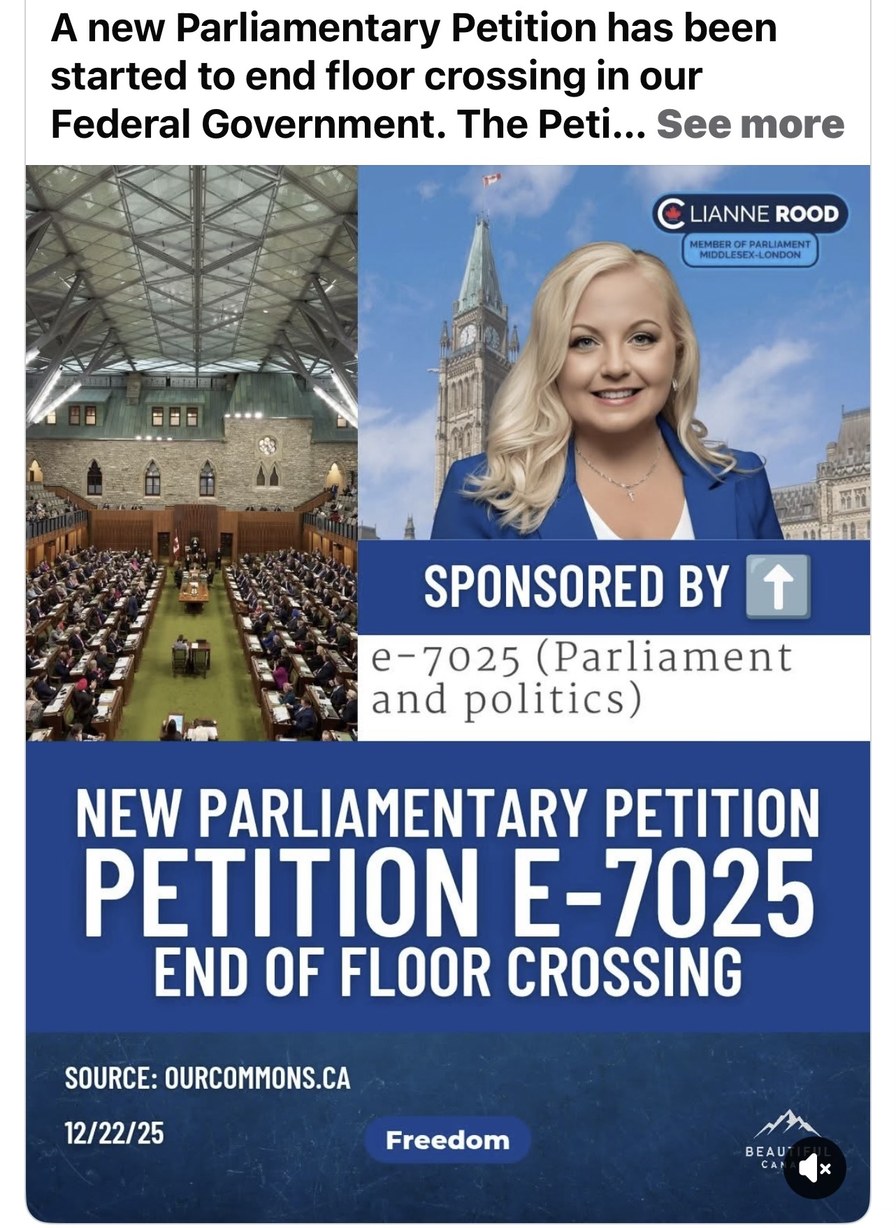Conservative MP Lianne Rood has officially agreed to sponsor Parliamentary e-Petition E-7025, bringing this issue of MP floor-crossing directly into Canada’s House of Commons.