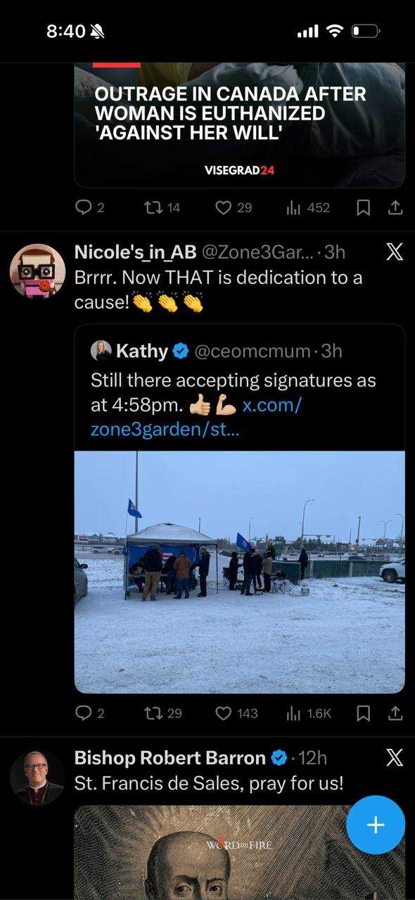 Our little Pop-Up made it onto Twitter yesterday. We had a pretty good turnout , (almost 200 signatures) considering it was not advertised anywhere. People noticed our Flag guy walking along 52 Street, and stopped in to check. Also had a bit of advertising from the dog park people, who posted on their facebook that there were some evil separatists at the dog park, and people hustled over to sign as quick as they could. Epic backfire!!!