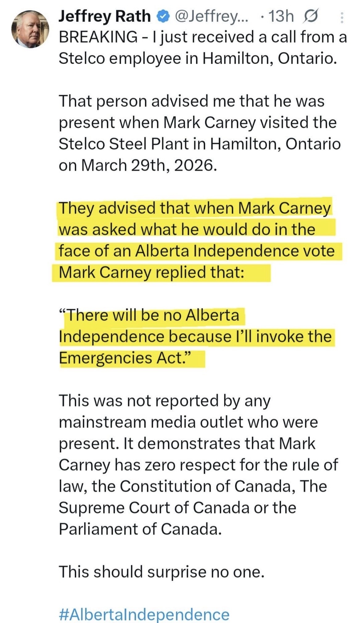 BREAKING - I just received a call from a Stelco employee in Hamilton, Ontario.