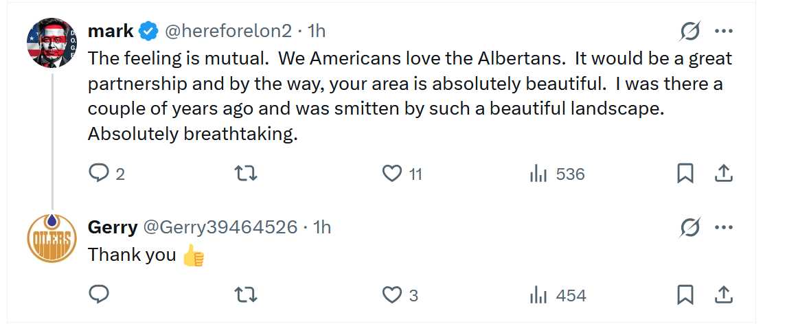 "I AM Albertan, Mark Carney does NOT speak for me or hundreds of THOUSANDS of my fellow Albertans. We want nothing to do with China. We are loyal allies to the USA & as soon as we vote for Independence America will see this. We will always choose USA over China. ALWAYS"