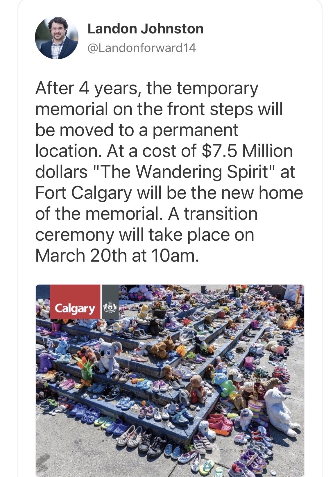 The $7.5 million is for moving the red plastic shoes - the “Every Child Matters” memorial that has sat at City Hall since the 2021 Kamloops announcement - to a new location at what used to be Fort Calgary. Except Fort Calgary doesn’t exist anymore.